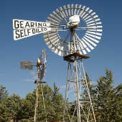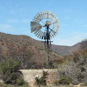| Gearing photographed on farm Spreeufontein district Laingsburg. | Gearing self-oiled photographed in Prince Albert. | Gearing self-oiled photographed in Prince Albert (same as previous photo) with house built around it. | Gearing near Bo - Wadrif between Tankwa Karoo and Sutherland. | Gearing manufactured by Cunningham and Gearing in Cape Town. Photographed on the Moordenaarskaroo road near Laingsburg. |