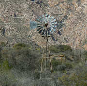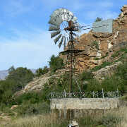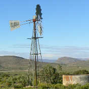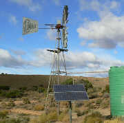 | Climax 1969 model photographed in Vleiland between Laingsburg and Seweweeks Poort. | Climax and Aermotor photographed on farm Slagterspoort district Prince Albert. | Climax 1944 model near Klaarstroom. Note the tubular stand struts. The stand was sold as a kit. | Climax No 18 model photographed at school in Nuwerus. | Climax 1969 model photographed on farm Groothoek near Nieuwoudtville. |